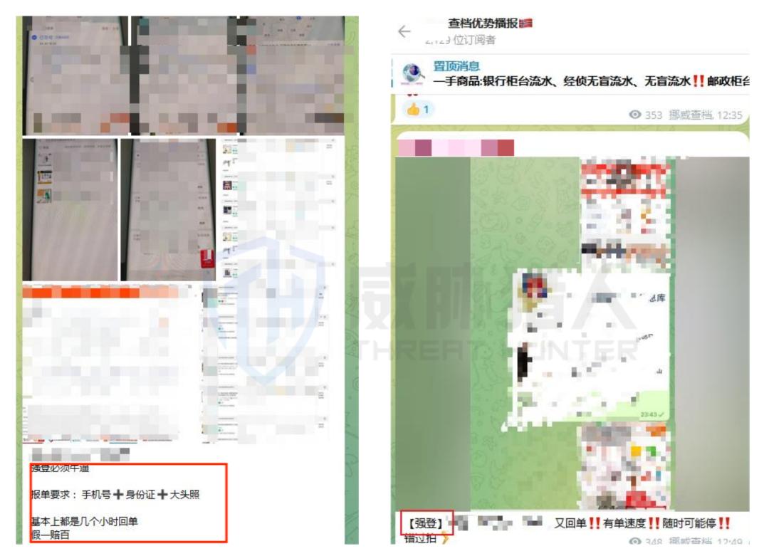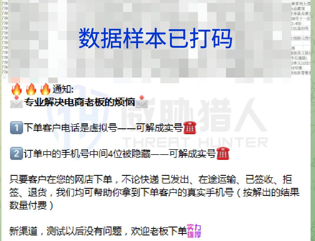 强登:指黑灰产通过多种复杂手法强行登录用户的平台账号,获取账号下的具体订单等敏感信息,再把这些信息提供给下游数据购买者,在中游数据售卖时售卖广告会标注【强登】。