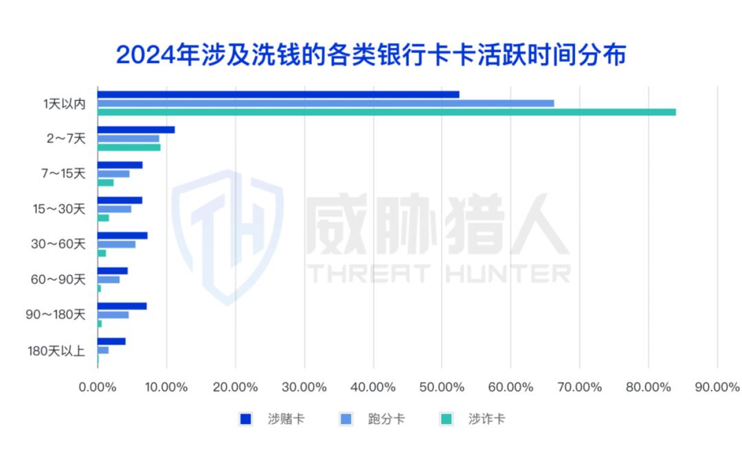 威胁猎人持续监控黑灰产作恶资源来源渠道变化趋势,发现作为猫池卡主要贡献渠道的发卡平台在2024年数量大幅增加,但生存周期缩短: