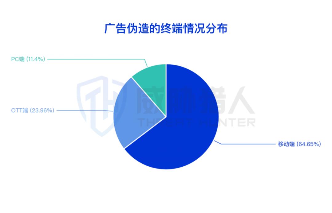 威胁猎人针对伪造的广告播放数据进行分析发现,伪造并上报的虚假广告数据里,覆盖了三大类终端:移动端、OTT端、PC端。