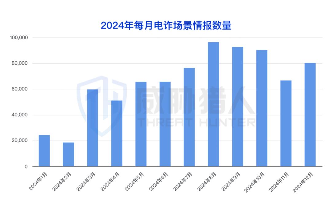 2024年,威胁猎人风险情报平台共监测到电信网络诈骗相关情报77万条,活跃作恶社交群组10032个。