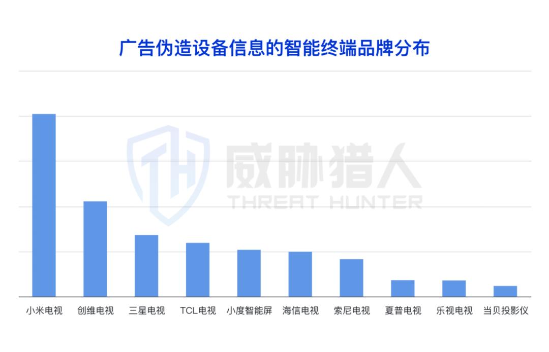 广告伪造的OTT终端中,包含了智能电视、电视盒子、智慧屏、智能音箱(带屏)、唱歌机、投影仪等,覆盖多个OTT终端品牌。