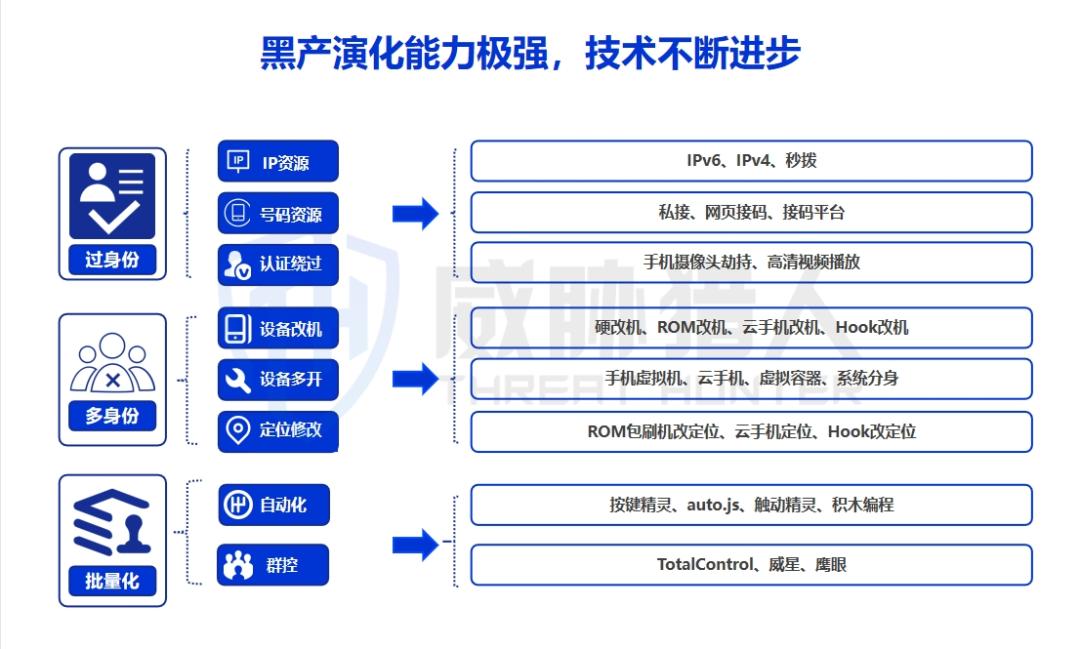 威胁猎人发布《2024年互联网黑灰产趋势年度总结》,基于对2024年互联网黑色产业链的深入研究,从2024年黑灰产攻击资源、攻击技术、攻击场景等维度进行分析,客观呈现2024年互联网黑灰产的整体发展态势,旨在从情报维度帮助各行各业企业提升对黑灰产的认知,从而进一步完善风控策略。