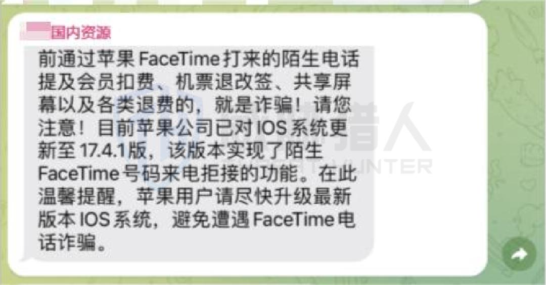 威胁猎人情报人员针对下半年下降现象进一步分析原因,下半年“IOS”相关数据下降主要是因为苹果官方针对Facetime诈骗出台相关打击措施导致的。