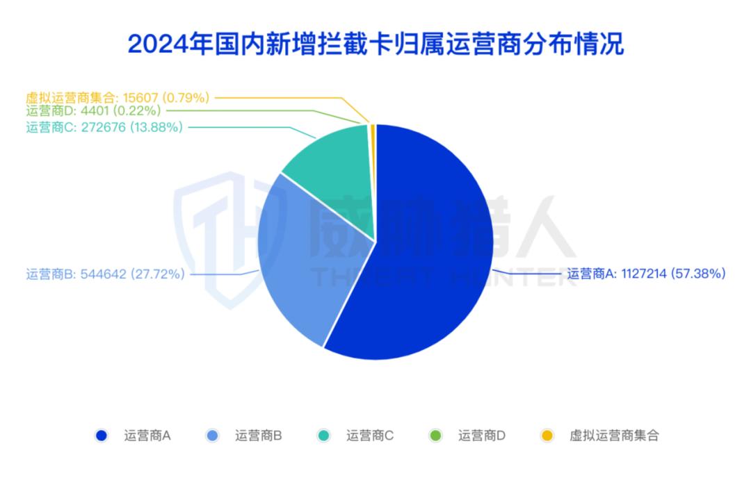 (3)2024年国内新增拦截卡归属为三大运营商的占比为98.99%