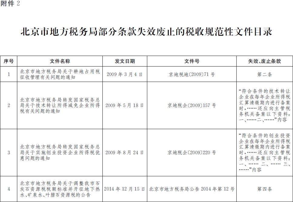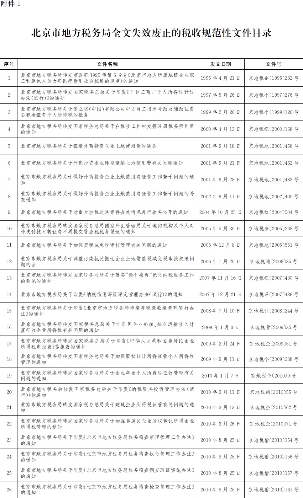 附件:1.北京市地方税务局全文失效废止的税收规范性文件目录