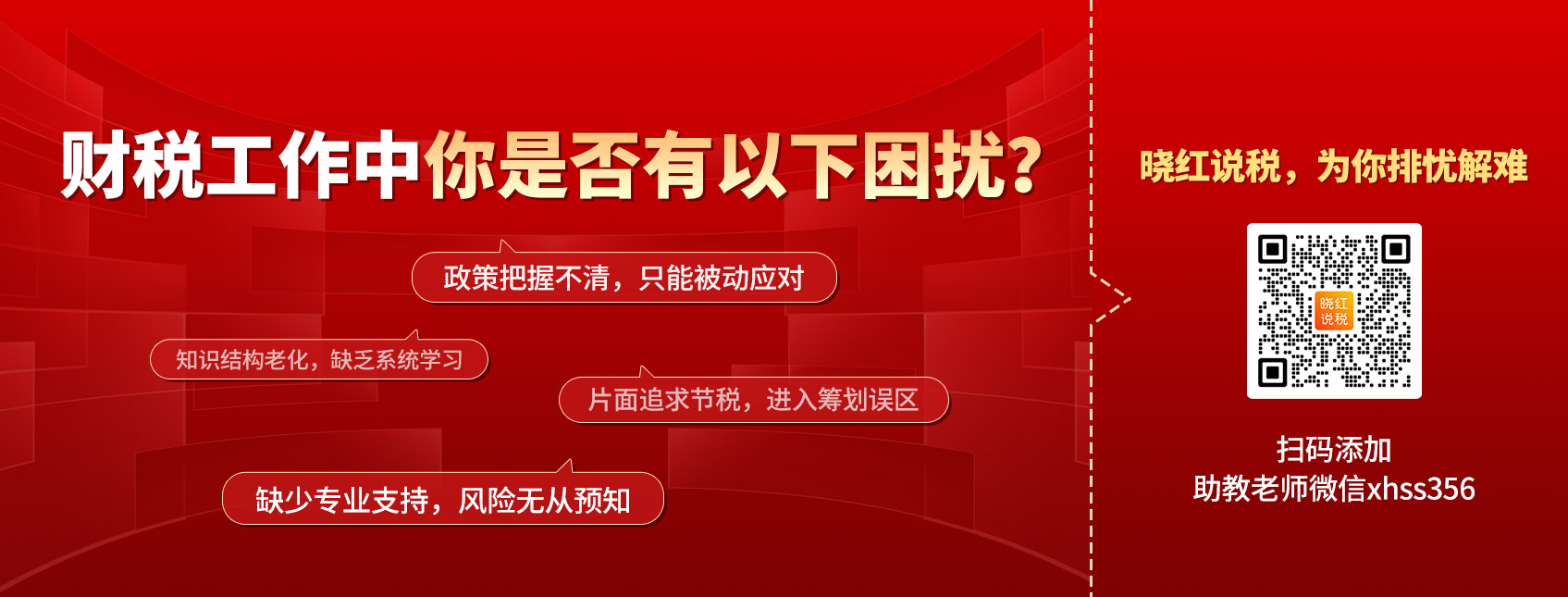 欢迎来到【晓红说税】! 这里为财税人提供最新政策解读+全税种实务+会计实务精品财税课程!如有相关财税问题可以直接咨询客服,平台会联系资深财务老师为您答疑解惑!
