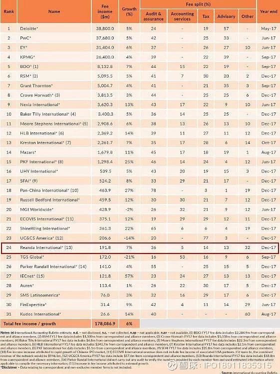 为了有对比性,我们同时也来看一下IAB在2018年发布的会计事务所国际排名情况。