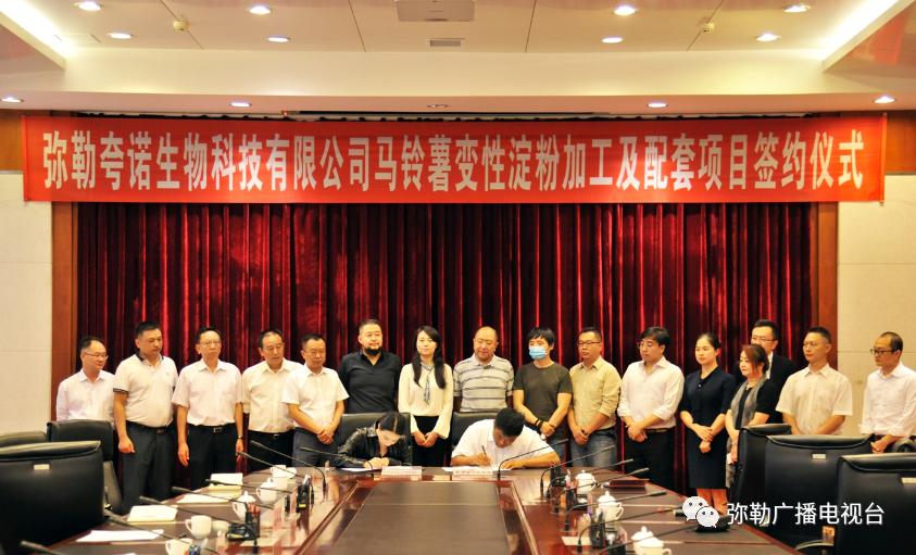 7月11日,弥勒市人民政府与昆明夸诺进出口贸易有限公司签订马铃薯变性淀粉加工及配套项目投资协议。