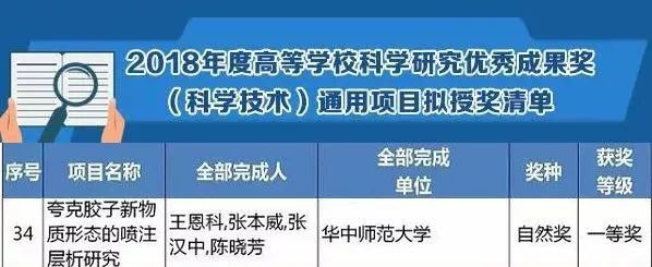 1月15日,我校物理科学与技术学院王恩科、张本威、张汉中、陈晓芳研究团队研究成果“夸克胶子新物质形态的喷注层析研究”获2018年度高等学校科学研究优秀成果奖(科学技术)自然科学奖一等奖。10月,由我校国家数字化学习工程技术研究中心主任、教育大数据应用技术国家工程实验室主任杨宗凯教授担任第一完成人的研究成果“智能云端一体化学习关键技术与应用”获2019年度高等学校科学研究优秀成果奖(科学技术)科技进步奖一等奖。