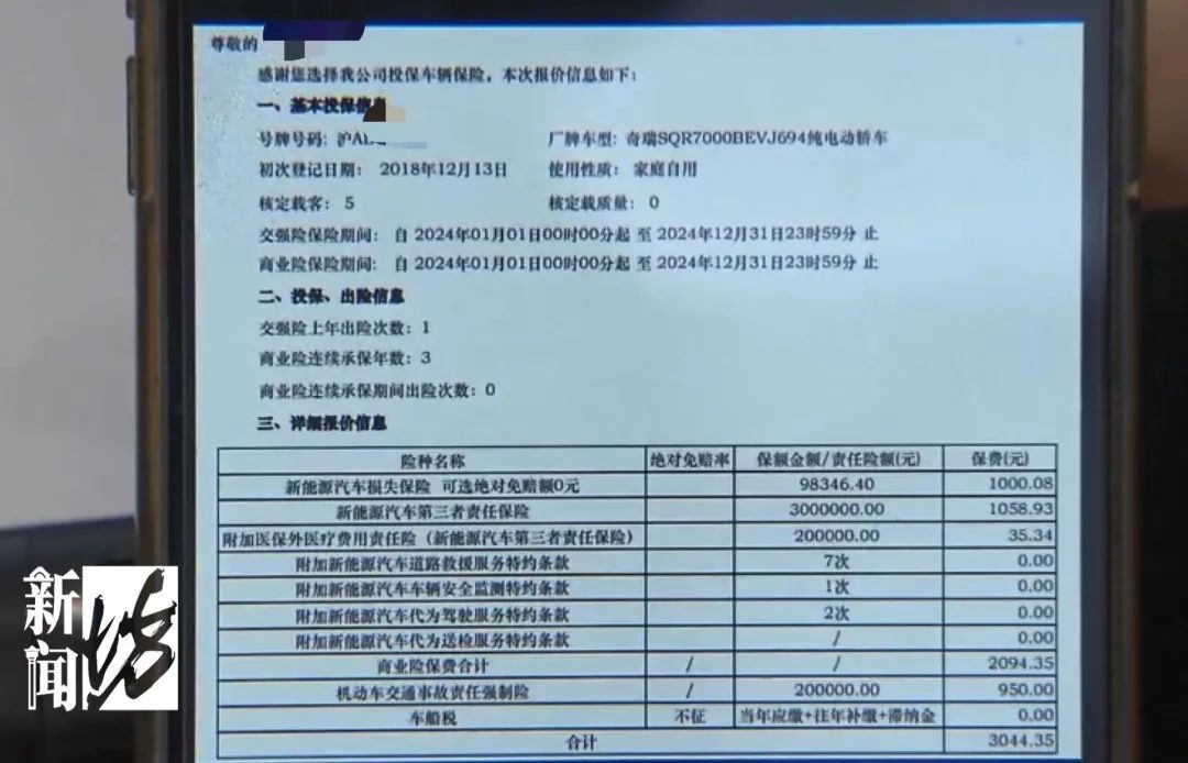 骆先生说:“给我的回复是,因为我新能源车已经到五年了,车损比不成正比,所以不能购买。然后我一定要续保,一定要加附加险、座位险或者其它的保险,我三千多元的保险被一直提到四千多元,(对方)还说就算你买了座位险,我也要叫领导去报批。”