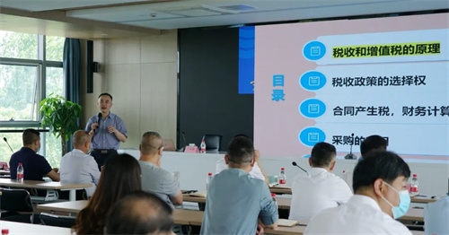 什么是税收?税收政策如何选择?税务风险怎么提防?财务报表怎么看?为进一步增强集团各公司“一把手”的财务专业知识,提升国企领导干部的运营管理能力,更好地服务于集团“十四五”规划“333”目标的实现,嘉源集团特邀红船税务智囊团专家王旭鸣老师和嘉兴学院商学院副院长李郁明副教授为集团领导班子、所属各公司主要负责人及财务分管负责人开展了一次关于税收财务的专题培训。