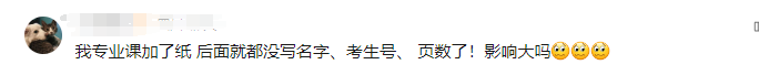 有些同学专业课答题纸不够后加了几张,没有填写个人信息。这种情况也不要紧,每个人的答题卡是放在一起的,只要试卷袋上还有第一页答题卡信息完整一般没有问题。阅卷时老师会仔细甄别的。