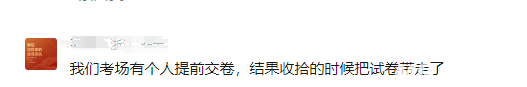 提前交卷无非两种情况,要么有紧急情况坚持不住了,要么试卷回答的很不错,但不管是哪一种情况,一旦将试卷带出考场,通通按照作弊处理!(今年光留言问这个问题的同学,已经不少于3个了)