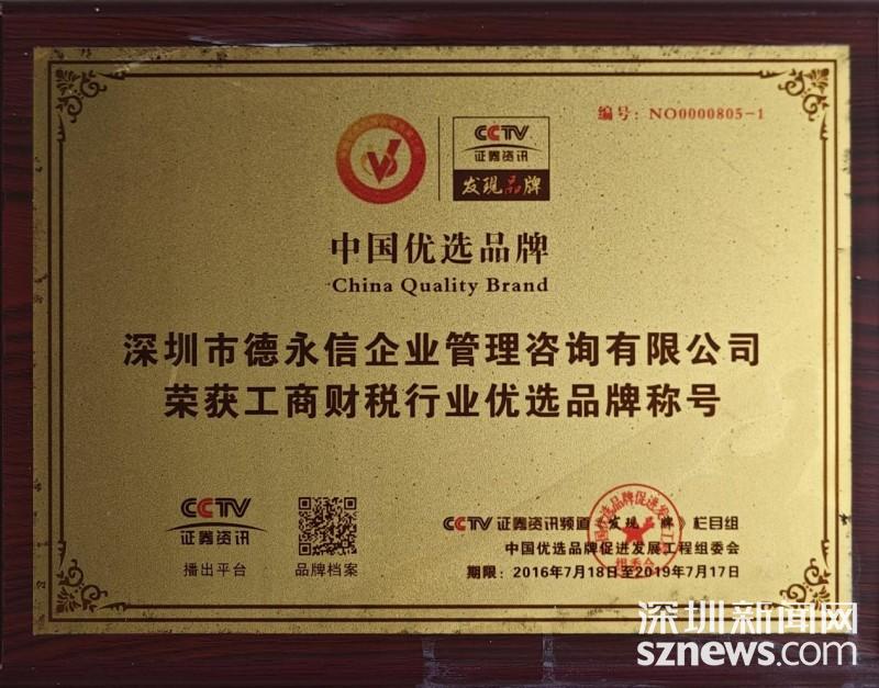 通过长周期多维度为客户提供合规服务,德永信连续多年获评“广东省守合同重信用企业”,荣膺央视“工商财税行业优选品牌”(CCTV证券资讯频道《发现品牌》栏目组),承载“品牌强国”使命担当,进一步巩固了德永信在行业排名中的领先地位。