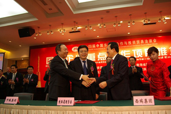 在推介会上,陕西省国资委重点推介了82个重点项目,涉及能源化工、装备制造、电子信息、有色冶金、新型材料、食品医药、物流服务、农林牧业、基础设施、产权交易等10个领域,产业项目投资总额约518亿元。众多国有企业重点项目代表与国内外客商在热烈友好的气氛中进行了深入接洽,陕西延长石油集团陕北靖边能源综合利用产业园区项目、中粮集团增资陕西西瑞集团公司战略合作项目、煤化工集团蒲城清洁能源化工有限责任公司与美国空气化工产品(中国)投资有限公司合作建设3×80000N m3/h大型空分装置项目、陕西电子信息集团公司与台湾联通光电股份有限公司LED系列产品合作项目等24个重点项目在大会上进行了签约,合同金额256.3亿元,投资总额423.9亿元。