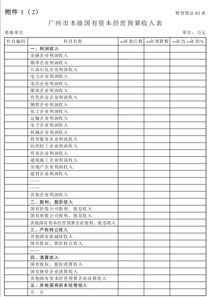 1预算收支表(财资预总01~05表,附件1.1-1.5),反映市本级国有资本经营预算收支汇总情况;