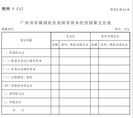 2市本级国有资产监管机构国有资本经营预算支出表(财资预01~03表,附件2.1-2.3),反映市本级国有资产监管机构所监管市属国有企业国有资本经营预算支出汇总情况;