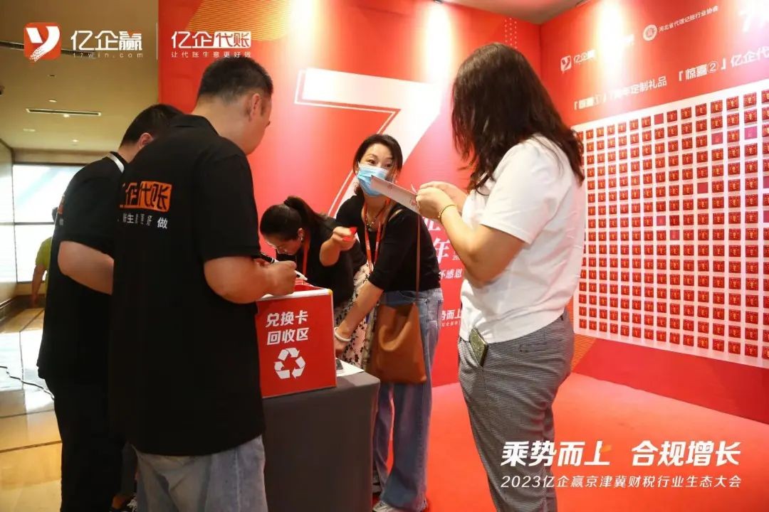 现场最火热的展区当属亿企代账7周年惊喜福利区了!亿企代账新老朋友相聚一堂,红包墙内设有特别定制礼品、精编课程书籍等各类惊喜发放,现场仪式感氛围感十足,红包抢到手软!