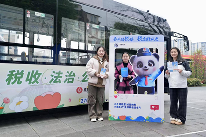 税务部门在成都黄土村公交站举办税收宣传普法巴士发车活动
