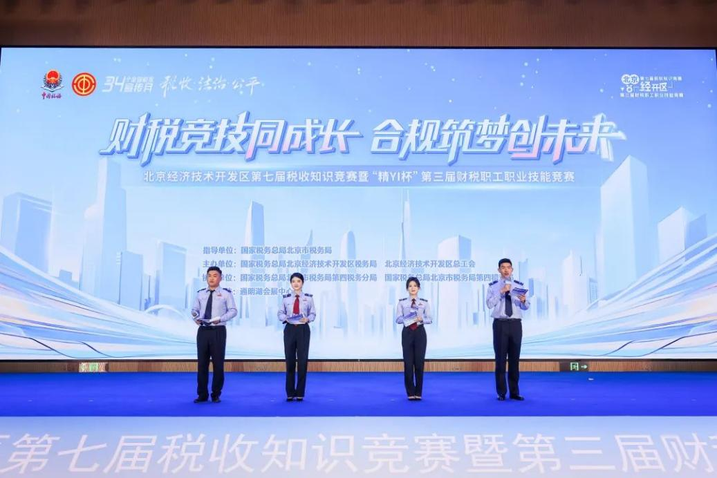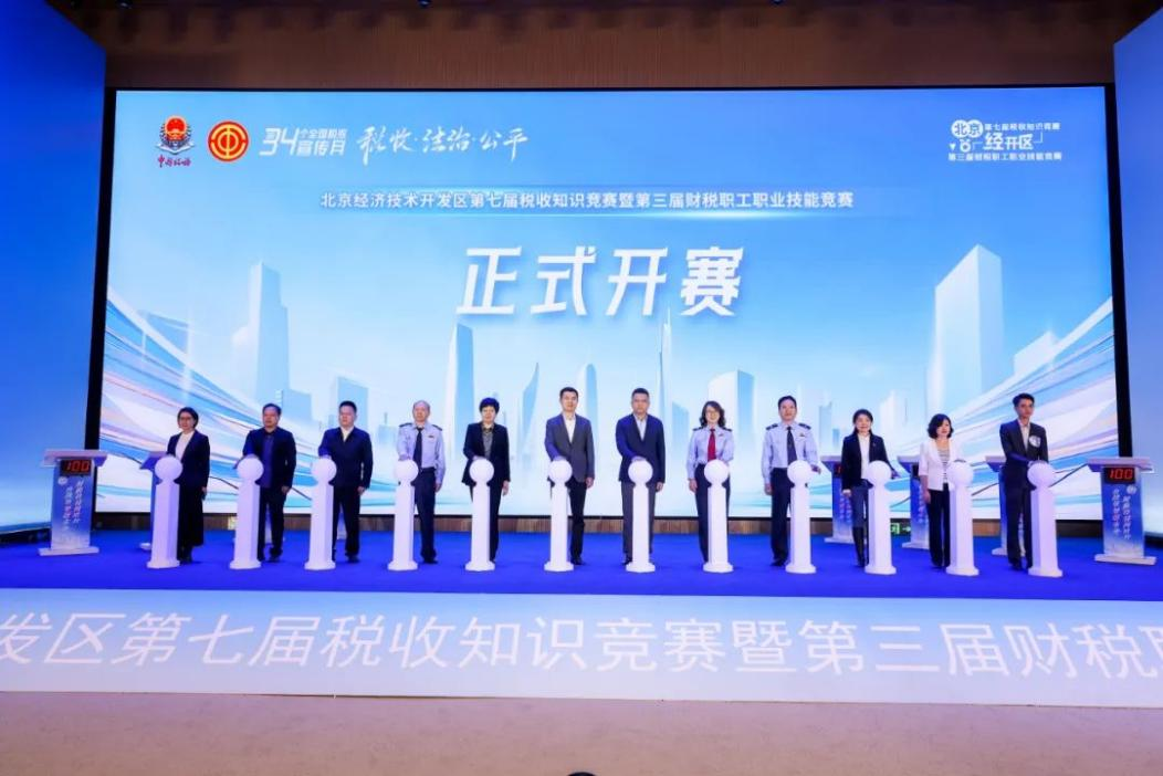 春日亦城,百卉萌动。4月21日,由国家税务总局北京市税务局指导,北京经济技术开发区税务局、北京经济技术开发区总工会联合主办,北京市税务局第四税务分局、北京市税务局第四稽查局协办的北京经济技术开发区第七届税收知识竞赛暨第三届财税职工职业技能竞赛决赛在北京亦庄通明湖会展中心成功举办。本届赛事以“财税竞技同成长、合规筑梦创未来”为主题,吸引京东集团、亦庄控股、京东方等110余家企业的300余名财税工作者参与。
