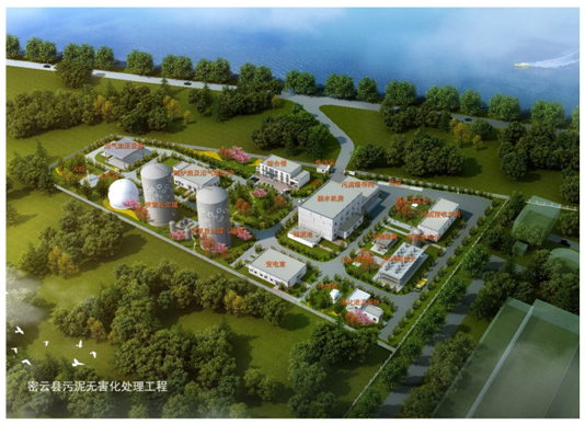 密云污泥处理厂 该项目位于潮白河边的密云与怀柔交界处,该项目为国内首个自主研发设计的采用热水解+厌氧消化+板框压滤进行的污泥无害化、干化处理的全套设备,并对厌氧消化产生的沼气进行回收利用,实现了内部能耗循环的工艺,并对剩余沼气储存并加以输出。经过处理的污泥能够回归到自然界的园林绿化中,实现了生态可持续发展的基本要求。