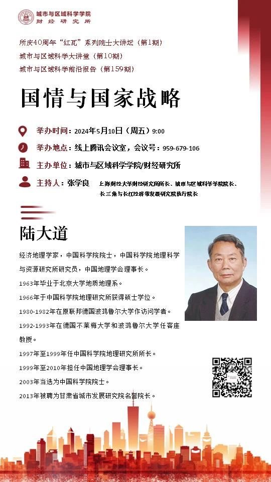 主讲人:陆大道(经济地理学家,中国科学院院士,中国科学院地理科学与资源研究所研究员,中国地理学会理事长)