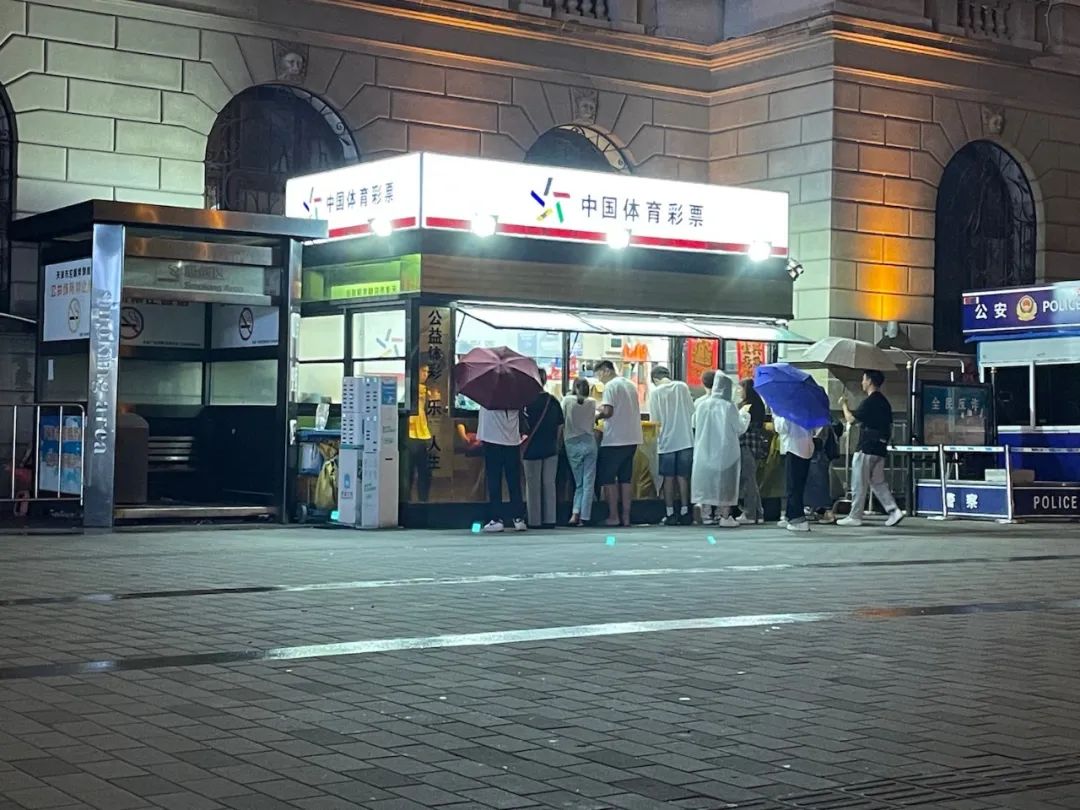 周末晚间,天津商业街内的彩票站点 图源:时代周报记者 傅一波