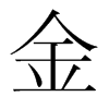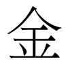 (17) 铜 [copper]。如:金铎(古代军中所用的铜铃);金茎(铜柱。为擎承露盘之用);金壶(古时的计时器。即铜壶);金翟(铜铸的人像。同金狄,铜狄)