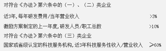 答:根据《办法》第六条规定,企业应建立规范的内部财务管理制度和员工绩效考核评价制度,年度财务会计报告经过中介机构依法审计,且激励方案制定近3年未因财务、税收等违法违规行为受到行政、刑事处罚。成立不满3年的企业,以实际经营年限计算。近3年的财务指标要求如下: