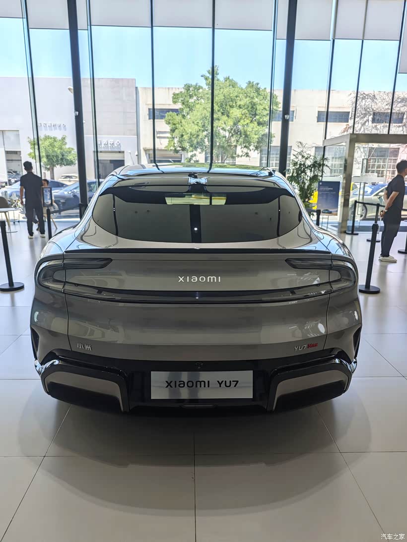从车尾看环型式的尾灯,这到晚上亮起来很有辨识度,这要是跑在路上一看就是小米YU7,翘起的小鸭尾还是很帅的。