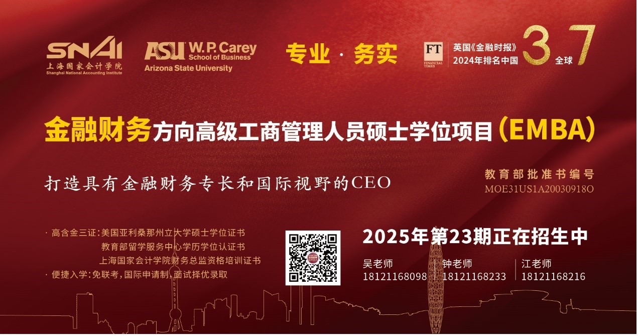 在这里,我特别推荐上海国家会计学院的EMBA项目。