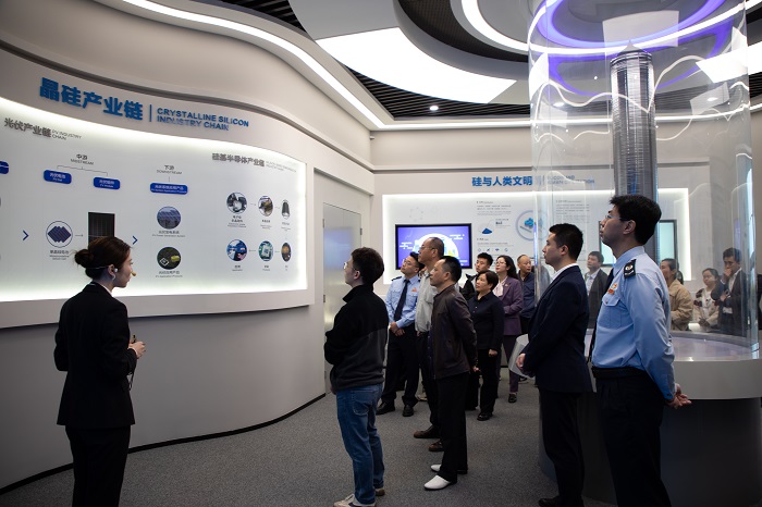 “引领高纯晶硅领域的技术进步,重点突破电子级多晶硅的量产技术,打破国外对我国半导体原材料制造技术的封锁。”四川永祥股份有限公司数字体验中心讲解员陈佳淼向参加活动的税务干部、企业代表介绍永祥生产发展现状。