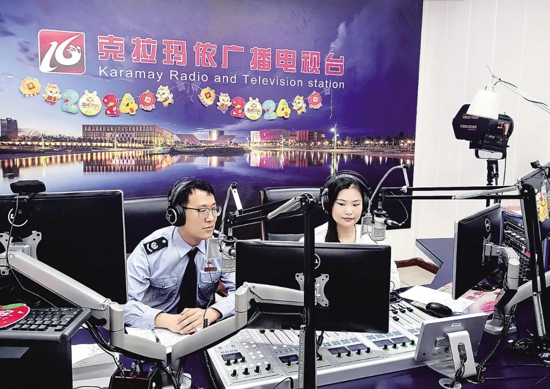 (国家税务总局克拉玛依市税务局聚焦第33个全国税收宣传月“税助发展 向新而进”主题,结合当地实际开展系列宣传活动。图为税务干部近日做客克拉玛依广播电视台《百姓热线》栏目,宣讲税费优惠政策,解答听众疑问。任艳琴 摄)