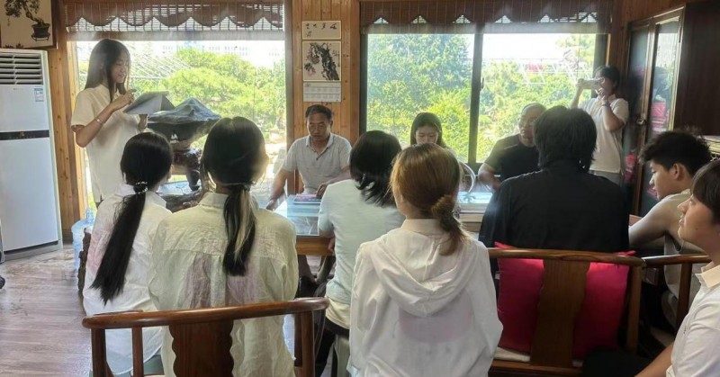 会后,张忠涛会长以热忱的态度招待了队员们,并亲自带领大家参观整个万景园。园中,形态万千的石榴盆景令人目不暇接。在随后的采访中,张会长将石榴盆景喻为“活的艺术品”,他表示:“传统工艺价值极高,但市场认知与推广力度仍需加强。年轻人若能静心学艺,把石榴盆景做精做细,我们的文化才能生生不息。”这番话语,道出了石榴盆景传承发展的关键所在。此次探寻之旅,石榴果小队不仅领略了石榴盆景的独特魅力,更触摸到非遗文化在当代传承的韧性与温度。