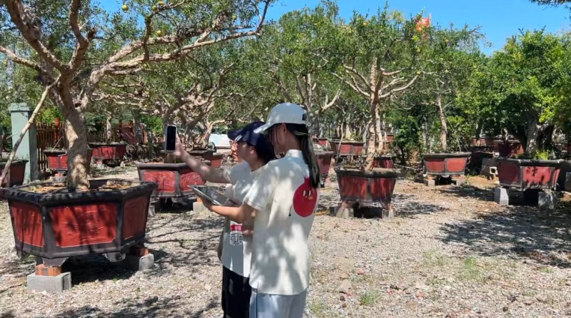 7月7日,石榴果小队走进荣畅种植园。园主热情相迎,带领队员们穿梭于满园的石榴苗木盆景间。一株株盆景,皆是精心雕琢的杰作,每一片叶子、每一根枝条,都凝聚着培育者的心血。烈日当空,骄阳似火,小队的三位成员毅然开启直播,向屏幕前的观众介绍这些精美的石榴苗木。他们的声音铿锵有力,激情丝毫未被高温削减,在与园主的交流中,深刻体会到培育这些苗木背后的艰辛与不易。