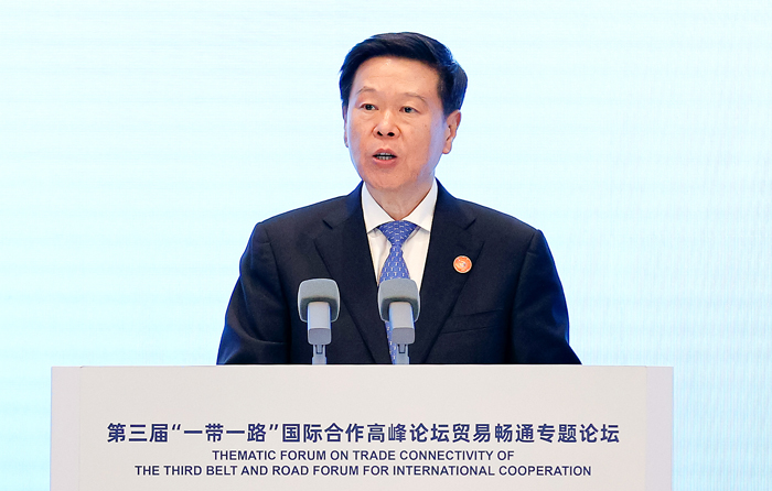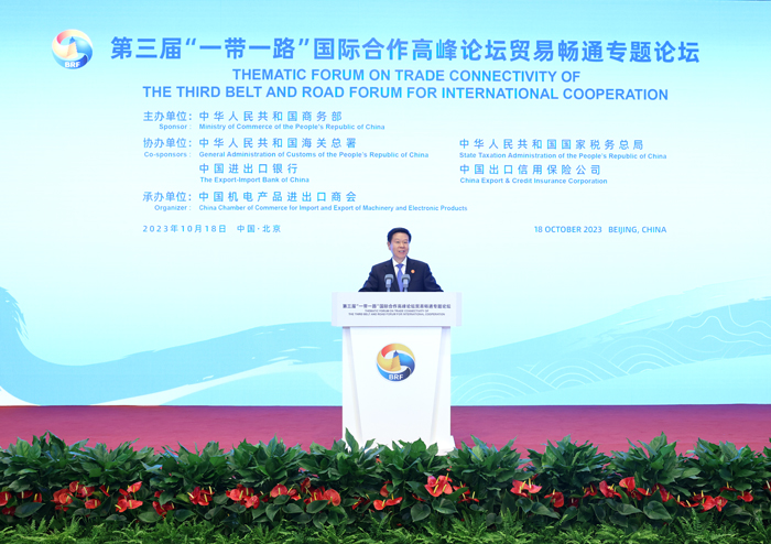今天上午,习近平主席在开幕式上发表主旨演讲,回顾了过去十年共建“一带一路”的精彩历程和宝贵经验,宣布了下一步中国支持高质量共建“一带一路”的八项行动,提出了未来合作的新愿景,描绘了开放共赢的新蓝图。刚才,何立峰副总理及各位来宾在演讲中回顾了共同推进贸易畅通取得的积极成效,提出了促进今后深化合作的考虑建议。十年硕果令人赞叹,未来美景令人神往。我相信,在本次高峰论坛的推动下,在大家的共同努力下,共建“一带一路”必将焕发更加旺盛的活力,必将迎来更加美好的未来,必将为世界经济发展注入更加强大的动力。