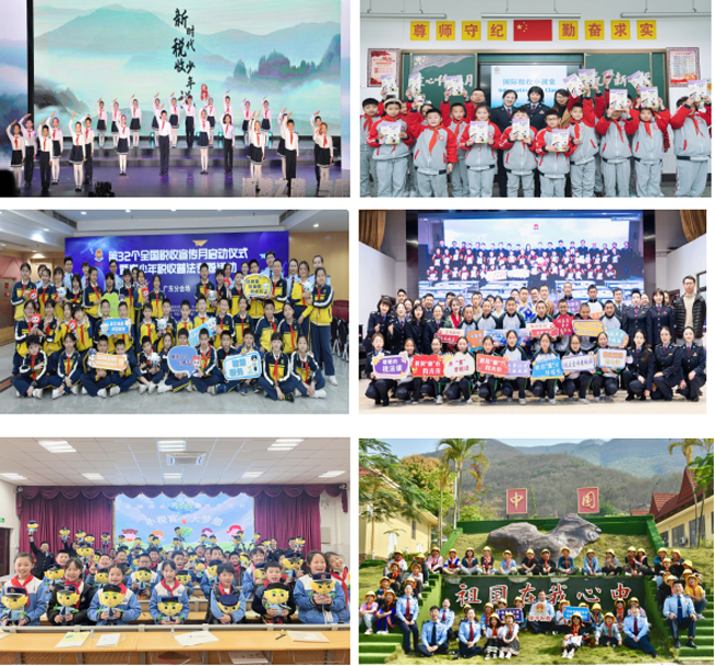 (一)上下联动,壮大宣传声势。税务总局联合北京、河北、浙江、广东、贵州等省局,首次以青少年税收普法专题活动的形式启动全国税收宣传月,各地纷纷参照总局模式,形成上下呼应的庞大声势。天津市局走进百年名校南开中学举办第32个全国税收宣传月暨税法进校园活动启动仪式,给中学师生送上税宣文创产品、普及税收知识。四川省局联合西南财经大学开展税收宣传月启动暨“四川省税收普法教育基地”揭牌仪式,发布大学生税收普法志愿者招募通知,设置“智慧办税+政策辅导+税史博览+就业服务+文创产品打卡”五大主题展区,为学校师生提供沉浸式税务体验。西藏自治区局联合宁波市局开展第32个全国税收宣传月启动仪式暨“税收宣传跨山海 一路童行向未来”甬藏税法云端联学活动,让拉萨北京实验中学和宁波市江北中心学校以网络视频连线方式,实现山海“云携手”,税法“云学习”。此外江西、宁夏、青岛等地也走进当地学校开展普法活动,引导青少年从小树立税收法治观念,充分发挥税收普法辐射效应。