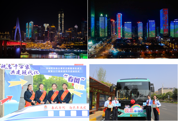 (三)创新活动载体,线上线下全覆盖。各地税务机关通过开展线上云端互动、税媒合作,线下趣味横生、形式多样的活动,对税收现代化举措、便民服务等内容进行全方位宣传。黑龙江省局、云南省局通过地方人民政府新闻办公室举行新闻发布会,广东省局、重庆市局、贵州省局、江苏南京市局举办主题灯光秀,滚动播放各类税收宣传标语,营造浓厚税收宣传氛围。