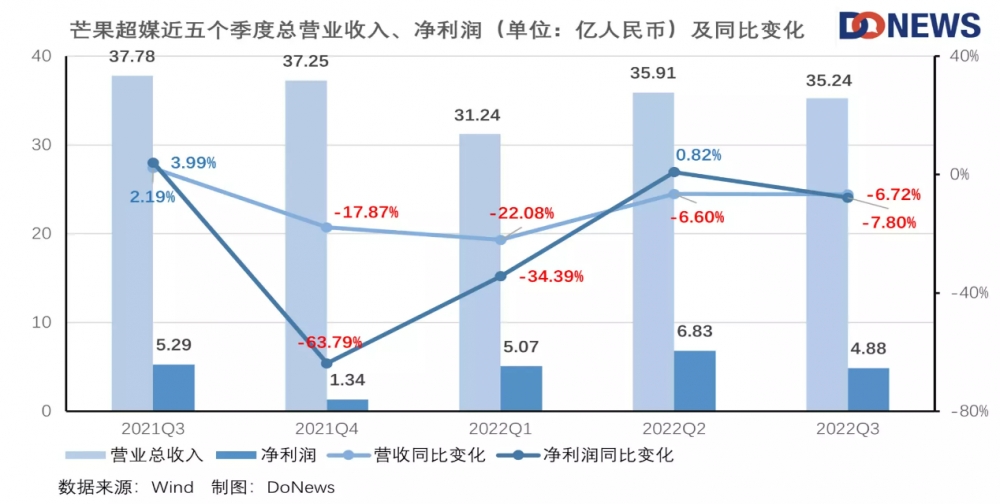 然而近几个季度受到宏观经济、新冠肺炎疫情等影响,互联网广告行业受到较大冲击,芒果TV最赚钱的广告业务收入上半年实现营业收入21.63亿元,同比下降31.15%,前三季度的收入同比下降26.33%。