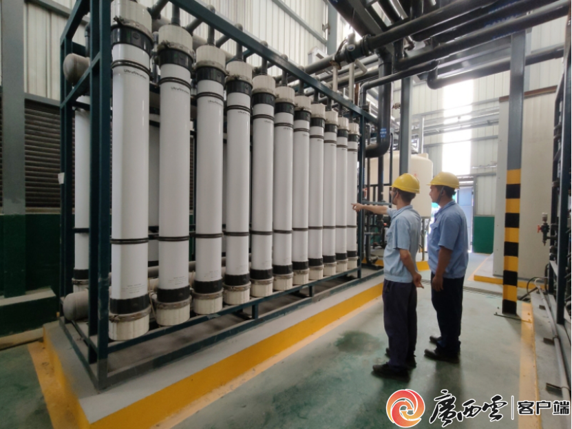 广西川金诺化工有限公司工人查看生产线生产情况。