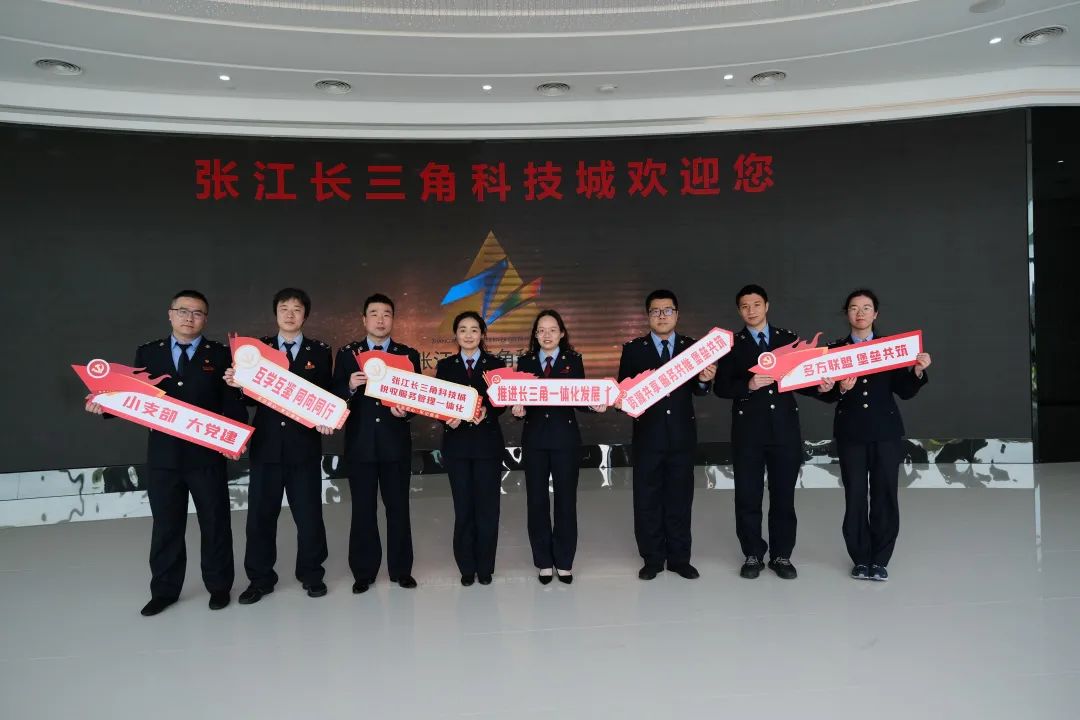 金山区税务局、浙江省平湖市税务局两地党员税宣队协同开展政策宣讲,现场回应纳税人、缴费人涉税问题,共解业务难题,协同推进两地税收政策落地落实,让党旗飘扬在攻坚克难第一线。
