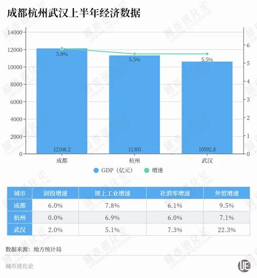总量表现亮眼,但5.5%的经济增速,不及全省平均水平——上半年,湖北GDP增速6.2%,位列全国第三、经济十强大省第一。也因此,有人说,身为湖北省会,武汉似乎没有完全发挥出“龙头”的带动作用。