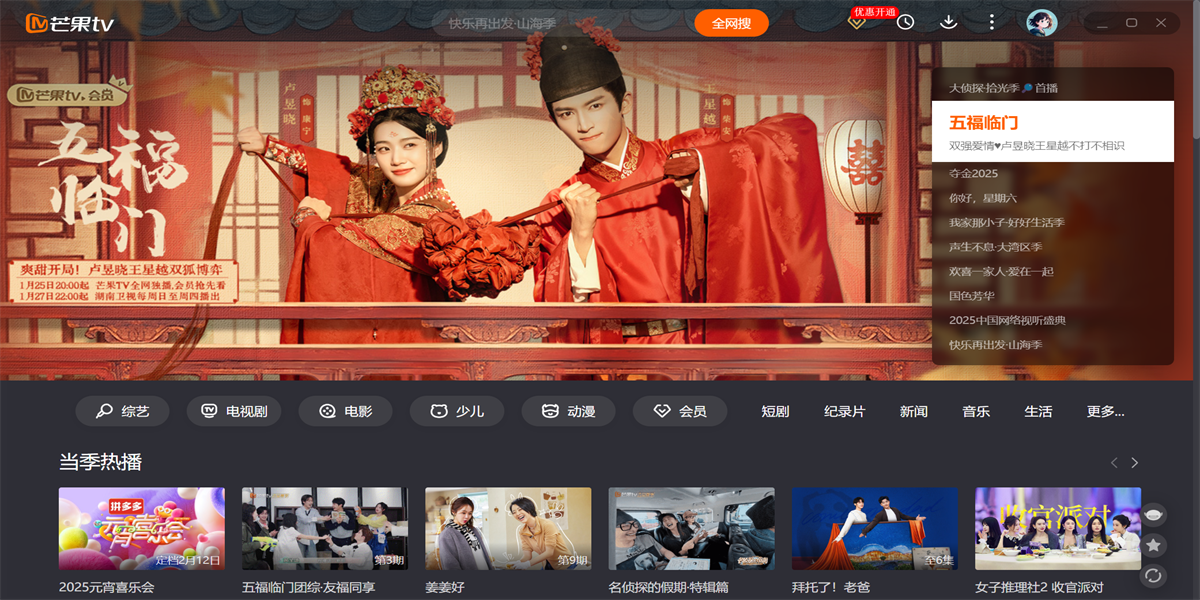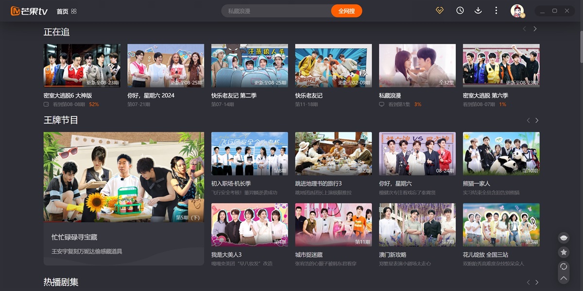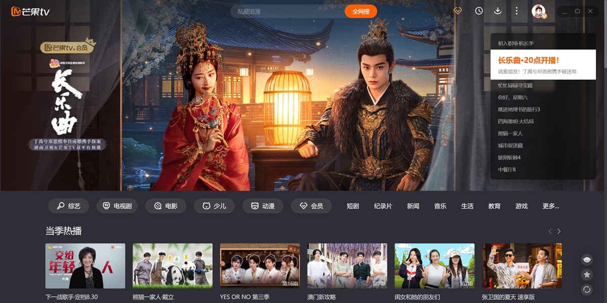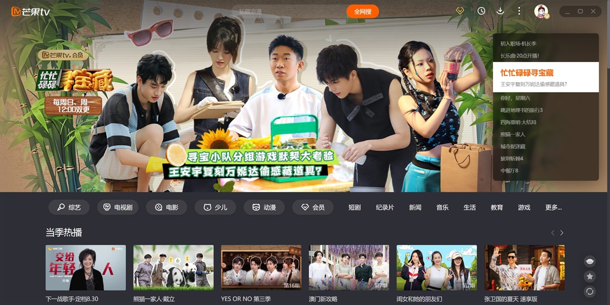 芒果TV电脑版是湖南广电旗下唯一互联网视频平台,聚合湖南卫视王牌栏目高清直播点播,同步全球热剧综影音内容。平台独播《乘风2025》《你好,星期六》等S级综艺,上线《仁心俱乐部》《国色芳华》等爆款剧集,更囊括《大侦探·拾光季》《声生不息·大湾区季》等原创精品。支持4K画质、多端云同步、个性化推荐,会员专享跳过广告、独家花絮等特权。芒果TV以“天生青春”为品牌主张,持续输出《妻子的浪漫旅行2025》《名侦探学院第八季》等创新IP,打造集视听盛宴、互动社区、直播电商于一体的全场景娱乐生态,引领行业盈利模式创新。在天极出彩软件园,您可以直接下载芒果TV的最新电脑版,并查看软件功能介绍、近期热播剧、软件更新日志等信息。天极出彩软件园为您提供安全的下载环境,确保下载过程流畅无忧。