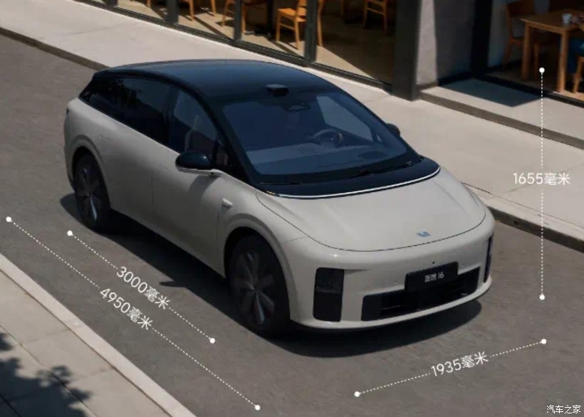外观上,新车4.95米车长、1.93米车宽、1.65米车高,3米超长轴距,整体外观上与L系列有所不同,采用了全新车身设计,全新五座SUV形态,大曲率弧线贯穿车顶,运动溜背造型,运动感十足,后续的纯电i系列车型应该都是为此车身造型,前脸与尾部依然有着理想的家族式设计语音,贯穿的日间行车灯与尾灯。