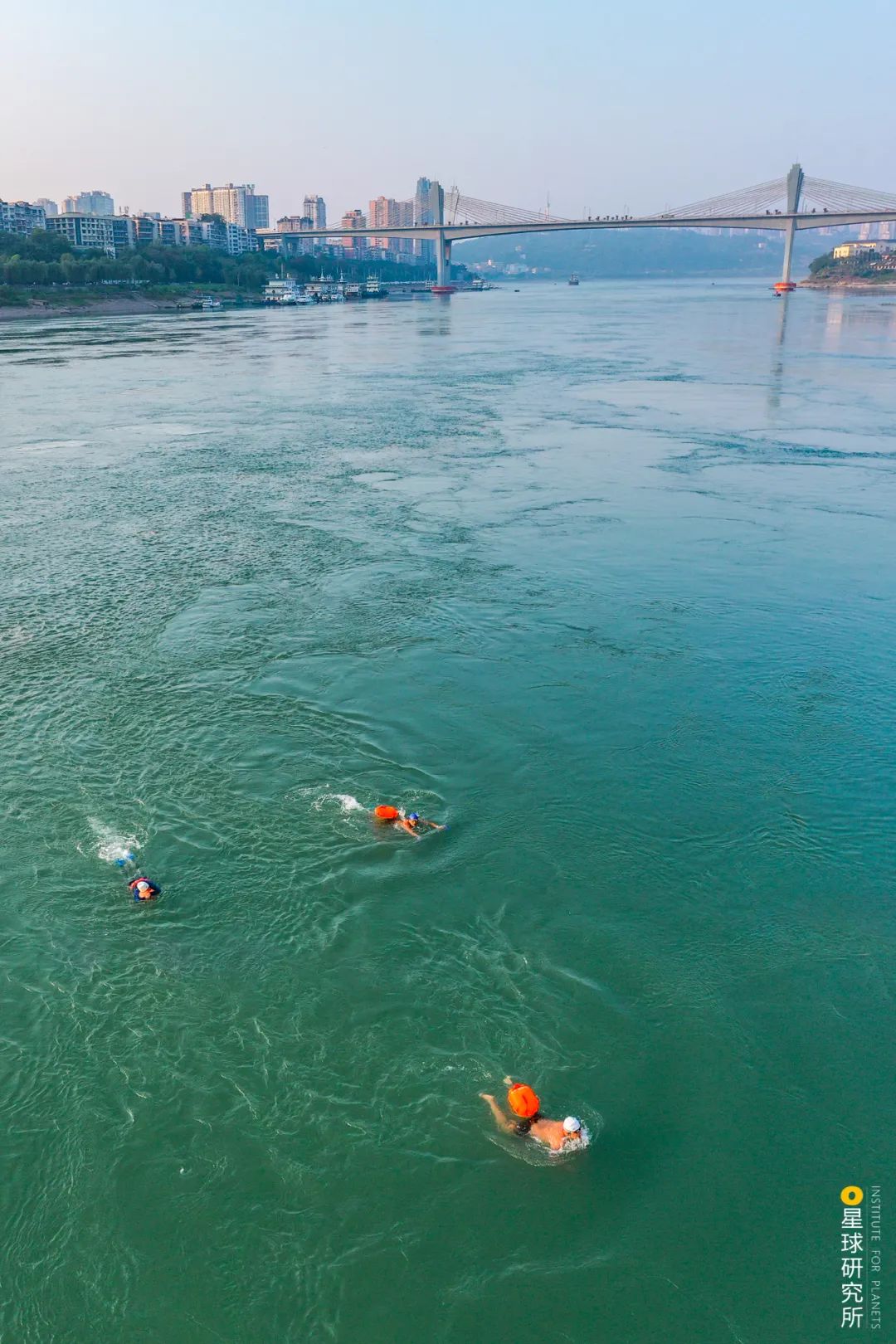 泸州市民在长江冬泳,远处为国窖大桥 | 摄影师@李珩