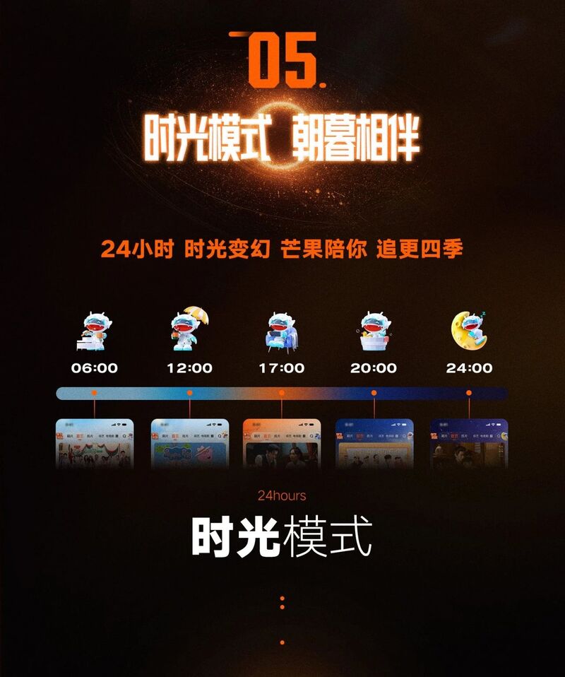 一直以来,芒果TV都以“天生青春”的姿态与用户紧密相连,带有天然的超越长视频“货架”工具属性的内生驱动力。新版芒果TV界面中特别融入“时光模式”设计——从早到晚,界面会随时间流转为用户提供不同情绪温度的陪伴。不同季节,还会有专属的节日元素与色彩变化,随时响应,让你在不经意间感受到它的陪伴。