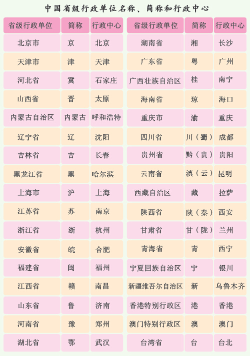“省”这一地方行政区划名称起源于元代,一直沿用至今,目前我国有23个省。