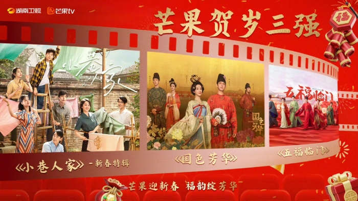 剧集综艺等节目全面突破,持续引发网络热度。剧集春节档,《小巷人家》《国色芳华》《五福临门》三部芒果出品的大剧,让荧屏映照出万家灯火的团圆温情。各类综艺创造多个名场面及热搜。《声生不息• 大湾区季》贺岁特辑春节气氛浓厚,实时收视连续十周第一。《女子推理社2》等内容引发大量衍生话题。