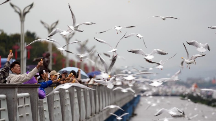 近日,红嘴鸥如往年一样从西伯利亚等地飞抵云南昆明,成为“春城”一道灵动的风景,吸引市民与游客前往观赏、互动。近日,红嘴鸥如往年一样从西伯利亚等地飞抵云南昆明,成为“春城”一道灵动的风景,吸引市民与游客前往观赏、互动。