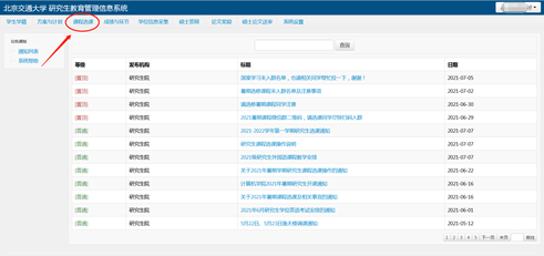 研究生课程实行“先选课、后上课”的管理模式,研究生选课使用北京交通大学自主开发的管理信息系统——“北京交通大学研究生教育管理信息系统”——在网上进行。